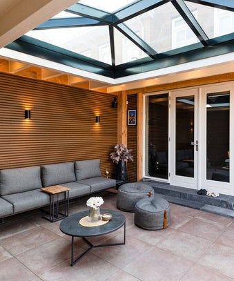 Doordat een veranda wind- en waterdicht is, krijg je echt een verlenging van bijvoorbeeld je woonkamer of keuken, tegen een spotprijs als je het vergelijkt met een complete aanbouw.